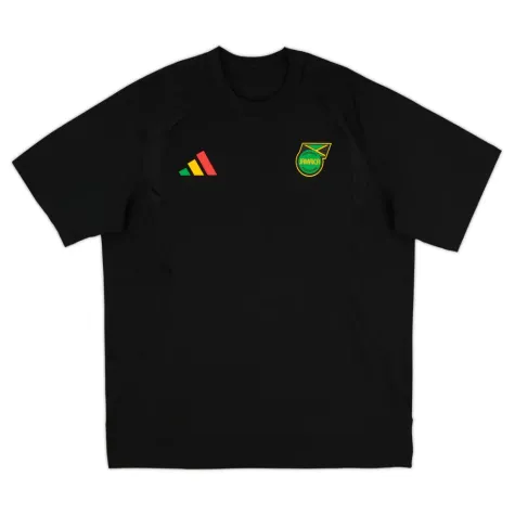 The Jamaica Tiro Travel Tee (Black) combines sleek adidas performance design with unmistakable national pride. Worn as part of Jamaicas official travel range, this tee delivers a sharp, understated look in classic black, elevated by authentic team detailing that represents the Reggae Boyz wherever you go.