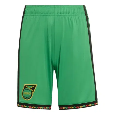 Styled in bold colours that reflect the iconic Jamaican home kit, these shorts capture the energy and identity of the Reggae Boyz and the legacy of Bob Marley. The vivid green base is accented subtly with classic Adidas detailing, combining team pride with standout looks that make these shorts perfect for match days, training sessions, or casual wear.