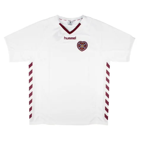The shirt captures the classic 2005-06 away kit look worn by Hearts players more than a decade ago. It features a predominantly white base with maroon details and vintage design elements typical of that season, including the period-correct club crest and Hummel branding that takes fans right back to a memorable era in Hearts history.
