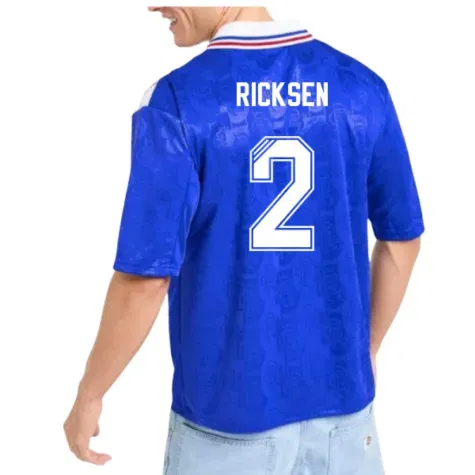 Official Fernando Ricksen football shirt. This is the NEW Rangers Retro Home Shirt for the 1996-1997 season which is manufactured by Score Draw and is available in all Adult sizes.