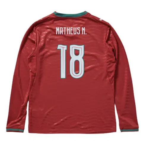 Official Matheus Nunes football shirt. This is the NEW Portugal Long Sleeve Home Shirt for the 2026-2027 season which is manufactured by Puma and is available in all Adult sizes.