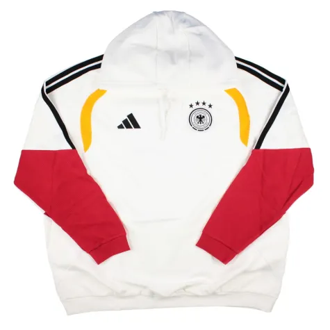 The clean white base gives this hooded top a fresh, contemporary look thats a standout in any fan wardrobe. Subtle team detailing and the iconic Germany crest provide unmistakable national-team identity without overpowering the minimalist aesthetic. The design makes it easy to pair with jeans, joggers or sportswear essentials perfect for daily wear or travelling to fixtures.