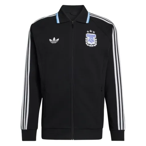 A dark and distinguished take on a classic silhouette. This Argentina 2026 Adidas Originals track top pays homage to the legendary Beckenbauer jacket - combining retro sportswear heritage with the pride of La Albiceleste ahead of the FIFA World Cup 2026.