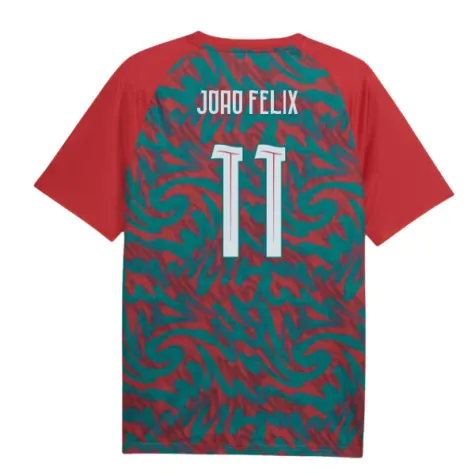 Official Joao Felix football shirt. This is the NEW Portugal Warm Up Jersey (Red) for the 2026-2027 season which is manufactured by Puma and is available in all Adult sizes.
