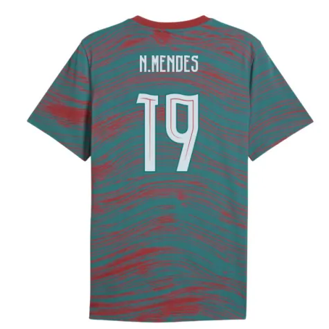 Official Nuno Mendes football shirt. This is the NEW Portugal FtblCulture Tee AOP (Red) for the 2026-2027 season which is manufactured by Puma and is available in all Adult sizes.