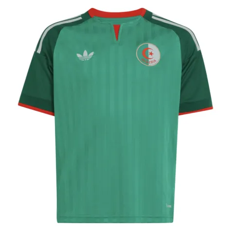 This is the official Algeria 2026 Adidas Away Shirt in kids' sizing - and it's a real head-turner. Ditching the traditional white home kit, this striking away strip is rendered in a vibrant emerald green with a retro-inspired design that nods to Algeria's rich footballing heritage.