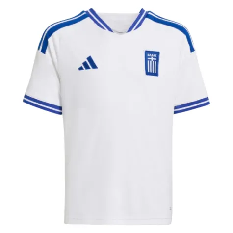 Cheer on the national side in style with the official Greece 2026 Adidas Home Football Shirt, designed especially for young fans. Crafted in the iconic white and blue of the Hellenic national team, this authentic kids' shirt brings the passion of international football straight to the terraces - or the back garden.