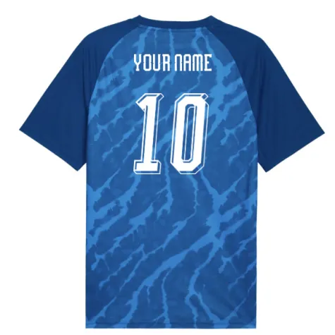 Represent Iceland in style with this striking official Your Name Puma warm-up jersey, as worn pitchside by the squad ahead of their 2026 fixtures. The bold royal blue body features an eye-catching all-over graphic print inspired by Iceland's dramatic glacial landscapes - an intricate pattern of sweeping, water-like streaks that gives this jersey a truly unique identity.