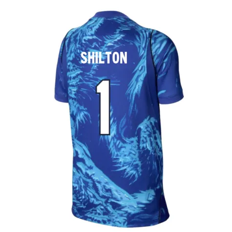 Official Peter Shilton football shirt. This is the NEW England Home Goalkeeper Shirt (Blue) - Kids for the 2026-2027 season which is manufactured by Nike and is available in all Childrens sizes.