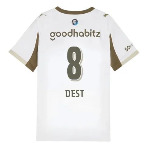 Official Sergino Dest football shirt. This is the NEW PSV Eindhoven Third Shirt (Kids) for the 2025-2026 season which is manufactured by Puma and is available in all Childrens sizes.