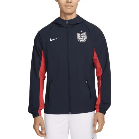 Show your Three Lions pride whatever the weather throws at you. The Nike England 2026/27 All-Weather Woven Football Jacket is built for the dedicated supporter who refuses to let the forecast get in the way of match day.