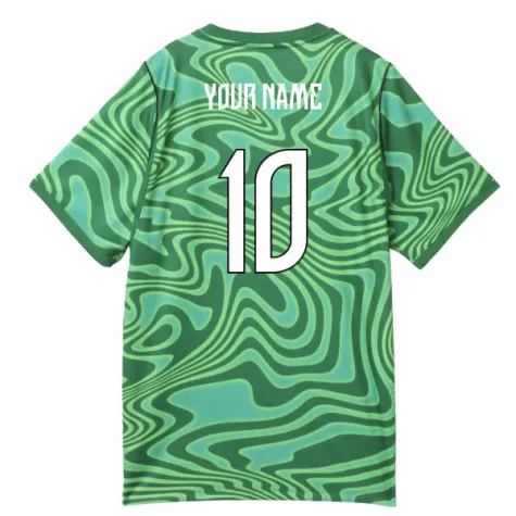 Official Your Name football shirt. This is the NEW Brazil Goalkeeper Shirt (Green) - Kids for the 2026-2027 season which is manufactured by Nike and is available in all Childrens sizes.