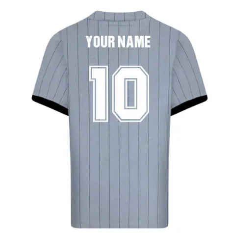 Forget the famous orange - this is the understated side of Dutch footballing history. The Netherlands 1983 away shirt is one of the most distinctive kits of the era: a cool steel-grey base adorned with fine dark pinstripes, finished with bold black sleeve cuffs and an open V-neck collar in the classic 1980s style.