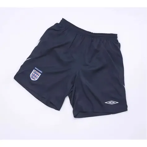 Official 07-09 England home shorts. Authentic Umbro shorts to be worn during Euro 2008 finals. Home short with gripper elastic and drawcord. Crest at right leg. Diamond logo at left leg. 100% polyester.